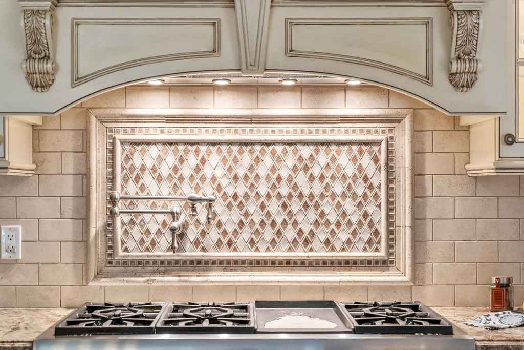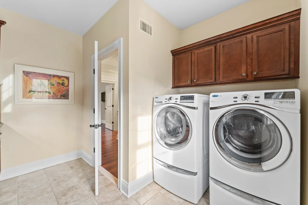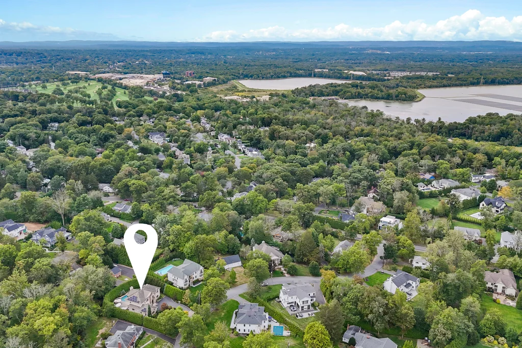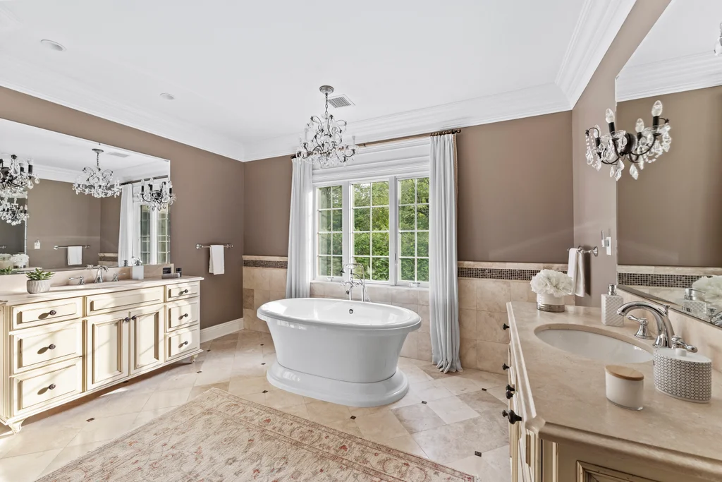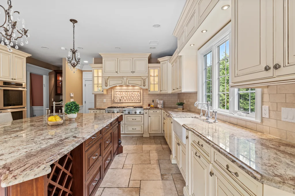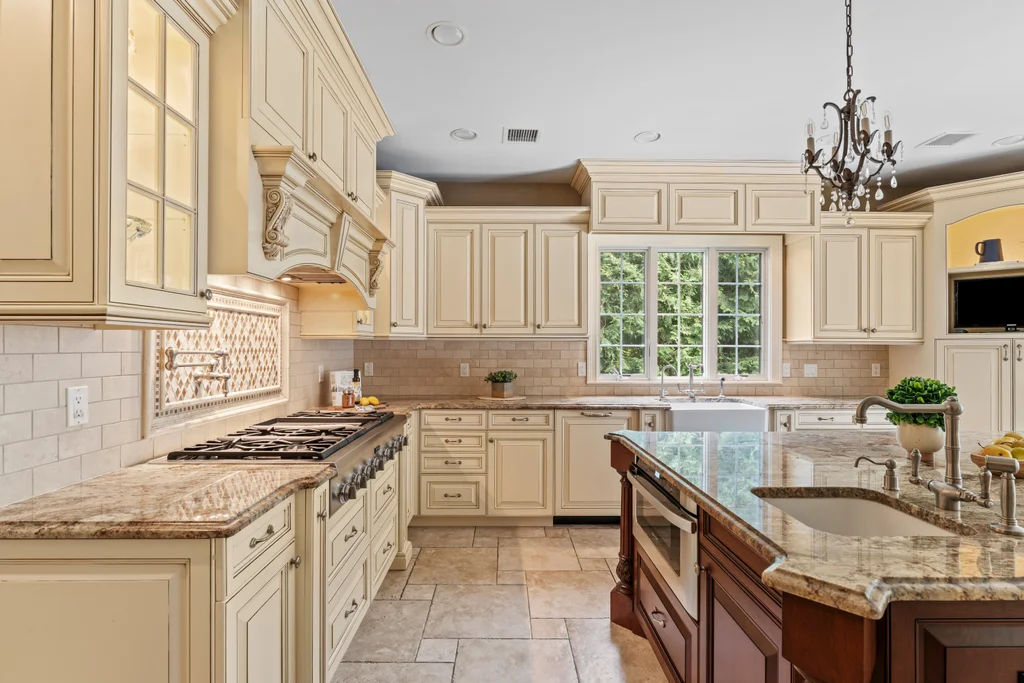 The chef’s kitchen is a true centerpiece, appointed with a 48” Sub-Zero refrigerator, a double Thermador oven, a 48” cooktop with pot filler, and refined finishes designed for culinary excellence. A two-car garage conveniently opens on grade to the kitchen, enhancing everyday functionality.