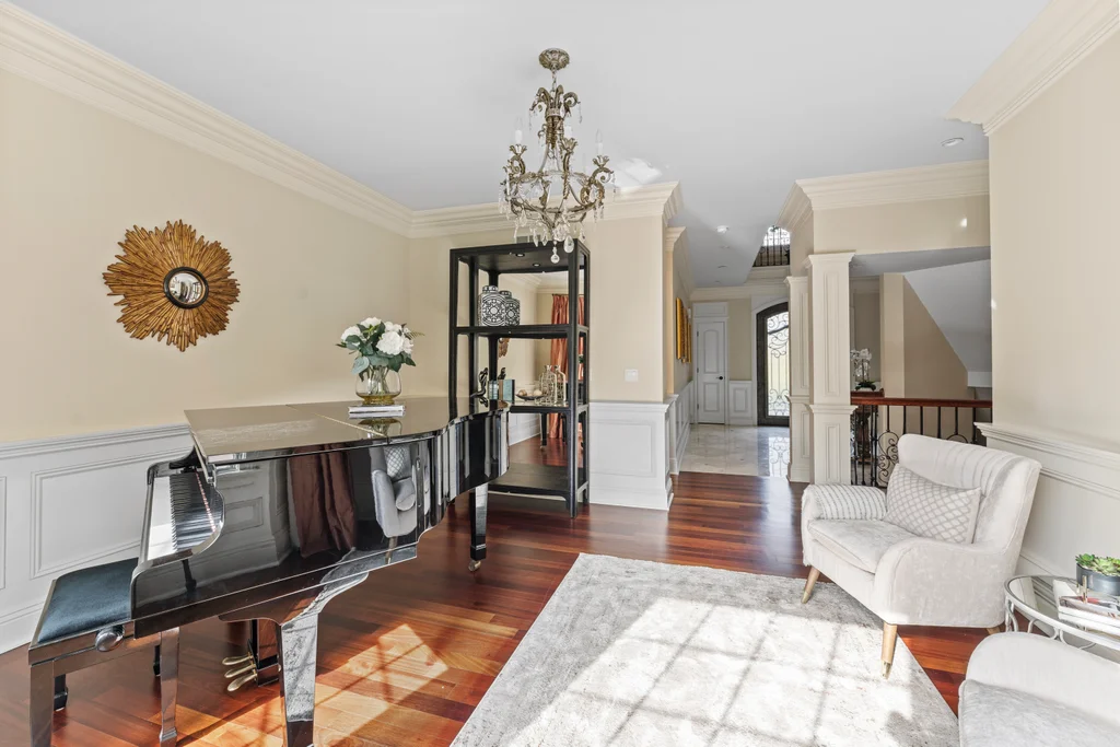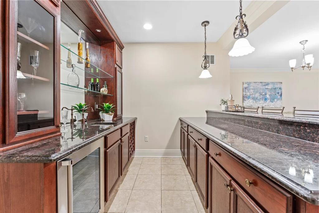 The full finished walk-out basement is designed for elevated leisure, complete with a marble wet bar and beverage center, private office, sauna, and a stylish full bath. Modern upgrades, including an EV car charger, further underscore the home’s commitment to refined living for today’s lifestyle.